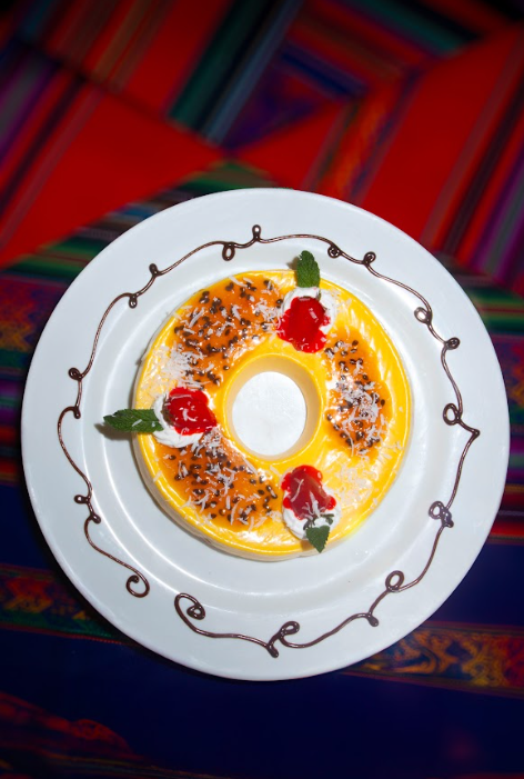Variedad de entradas, fondos, guarniciones y postres inspirados en el valle sagrado.